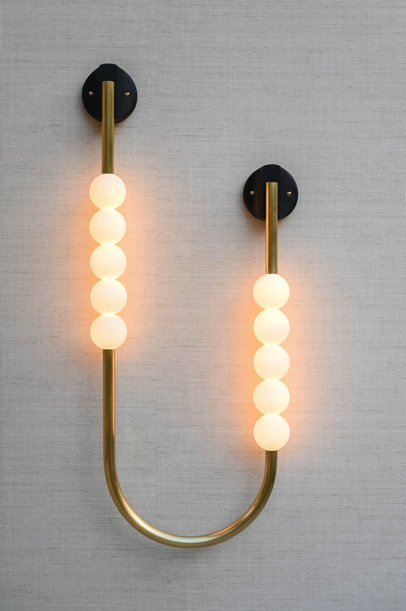 At the heart of this dialogue stands the ALBOR wall lamp, a piece that distills the essence of the collection. Its name, meaning “dawn” in Spanish, reflects Isabel Gómez’s Andalusian heritage, where sea, sun and light have long defined the Mediterranean art of living. ALBOR embodies the glow of first light on stone and water, an intimate encounter between material warmth and luminous delicacy. Crafted in brass and glass, it brings a sculptural presence to the wall, while radiating a poetic light that transforms its environment.